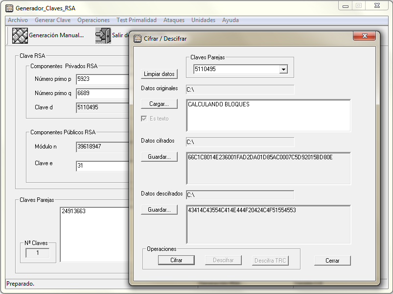 En la prácticaRSA3.3.1 vas a comprobar esta cifra de texto usando el software genRSA y luego el software ExpoCrip.