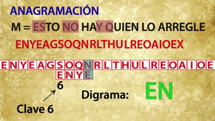 Pero, ¿cómo se encuentra ahora la clave? Una vez encontrada esa ventana que nos entrega varios digramas comunes de nuestro lenguaje, procedemos a calcular cuántas ventanas hemos probado hasta dar con la adecuada, que en nuestro caso han sido 6: las ventanas NYEA, YEAG, EAGS, AGSO, GSOQ y SOQN. Como han sido necesarios 6 desplazamientos y la cifra era por columnas, esto nos sugerirá que el número de filas que tiene la matriz puede ser 6.