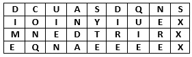 Siguiendo el método indicado, descifra el siguiente criptograma C = DCUAS DQNSI OINYI UEXMN EDTRI RXEQN AEEEE X, si sabes que se ha cifrado por permutación de filas y que la clave es 4. ¿Cuántas columnas has tenido que utilizar y cuál era el texto en claro?