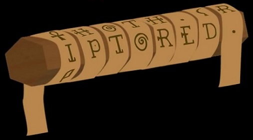 CIFRAREMOS CON ESTE ARTILUGIO DEL SIGLO V ANTES DE CRISTO USANDO UN BASTON CON UNA CINTA QUE SE ENROLLA VEINTICINCO VECES SOBRE EL MISMO Y PERMITE ESCRIBIR EN SEIS CARAS.