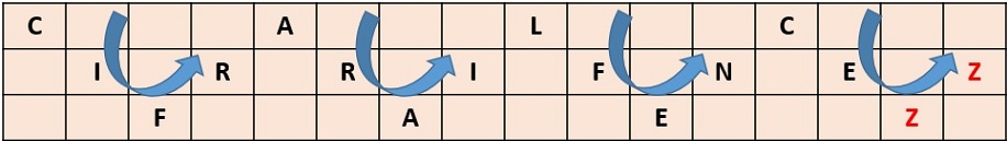 3. Se va escribiendo el texto cifrado en columnas de izquierda a derecha hasta la fila Fl