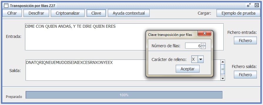 Usa Criptoclásicos v2.1 para cifrar por permutación de filas el texto en claro M = DIME CON QUIÉN ANDAS, Y TE DIRÉ QUIÉN ERES, teniendo como clave 6 filas.