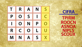 La manera más sencilla de cifrar un texto y crear por tanto un criptograma, consiste en cambiar de lugar las letras de ese texto en claro, es decir desordenándolas de forma que su lectura nos lleve a algo sin sentido. Como ya sabemos por lecciones anteriores, con ello se logra el efecto de difusión pero, en cambio, su talón de Aquiles es que el criptograma contiene exactamente las mismas letras que el texto en claro y, por lo tanto, se manifiesta de forma patente en dicho criptograma la redundancia característica del lenguaje que aparece en el texto en claro.