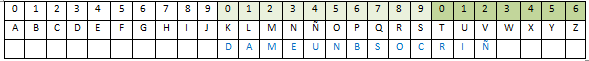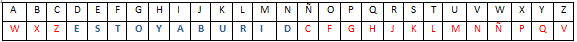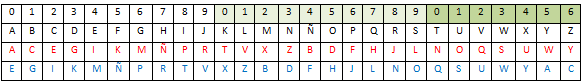 De esta manera, el alfabeto de cifrado para las 27 letras en mayúsculas del castellano quedaría como se muestra en la figura.
