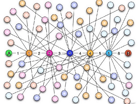 Según la misma, cada persona conoce de media, entre amigos, conocidos, familiares y compañeros de trabajo o escuela, a unas 100 personas. Si cada uno de esos amigos o conocidos cercanos se relaciona con otras 100 personas, cualquier individuo puede pasar un mensaje a 10.000 personas únicamente pidiendo a un amigo que haga lo mismo con el mensaje, pero con sus amigos.