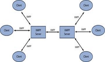 Figura 7. Esquema que muestra el funcionamiento federado del protocolo XMPP