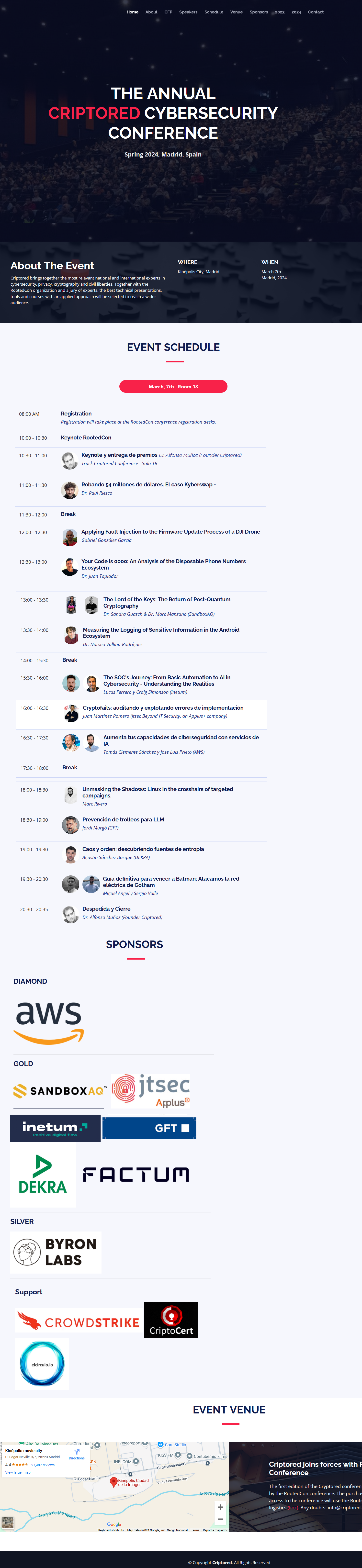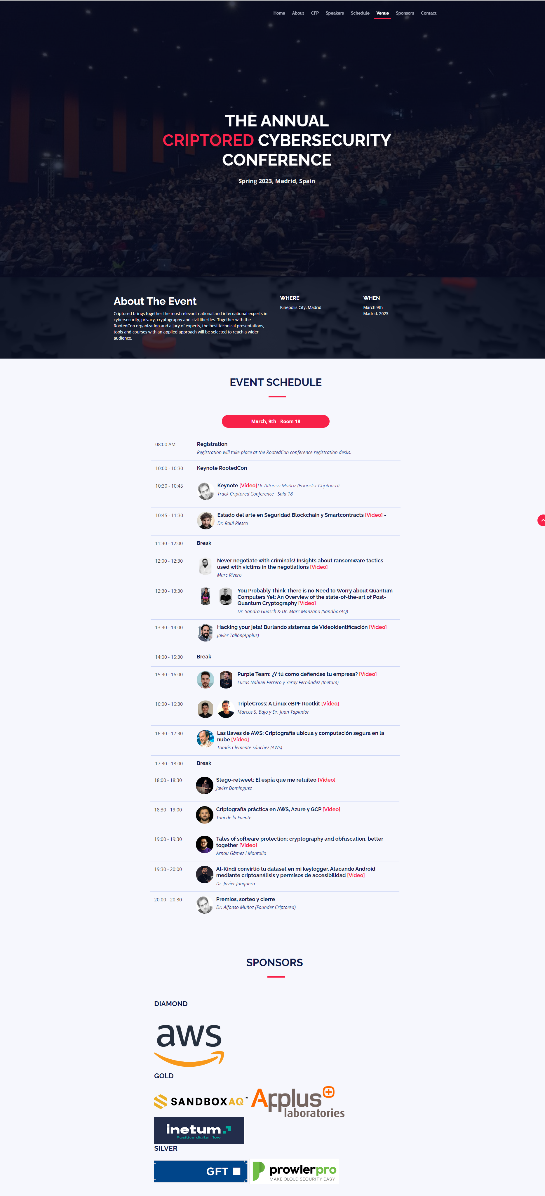 Criptored brings together the most relevant national and international experts in cybersecurity, privacy, cryptography and civil liberties. Together with the RootedCon organization and a jury of experts, the best technical presentations, tools and courses with an applied approach will be selected to reach a wider audience.