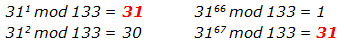 Se ha producido una colisión pues el resultado en j 3167 mod 133 = 31 es igual que el valor en i 311 mod 133 = 31.