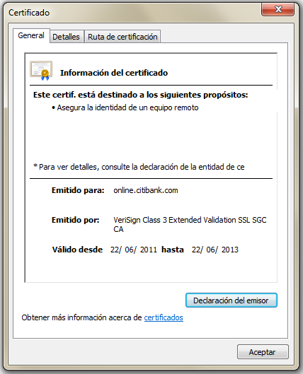Certificado digital de Citibank USA (fecha de acceso 29/12/2011)