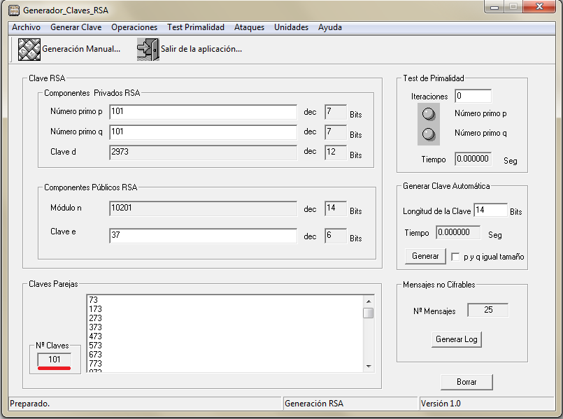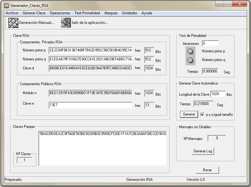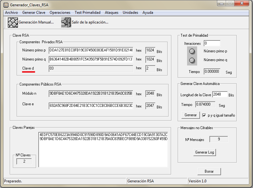 En la prácticaRSA2.2.1 vas a generar 4 claves RSA de tamaños reales donde podrás comprobar lo visto en este apartado.