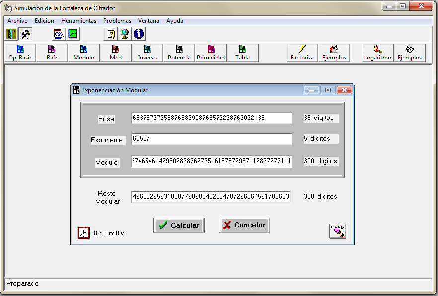El siguiente ejercicioRSA2.5.1 te demostrará lo anterior. Harás el cálculo online de la raíz cuadrada de un número de 768 bits, que corresponde al cuadrado del valor del primo p de 116 dígitos (384 bits) del último desafío RSA 768 resuelto en el año 2009, en un tiempo de ejecución inmediato.