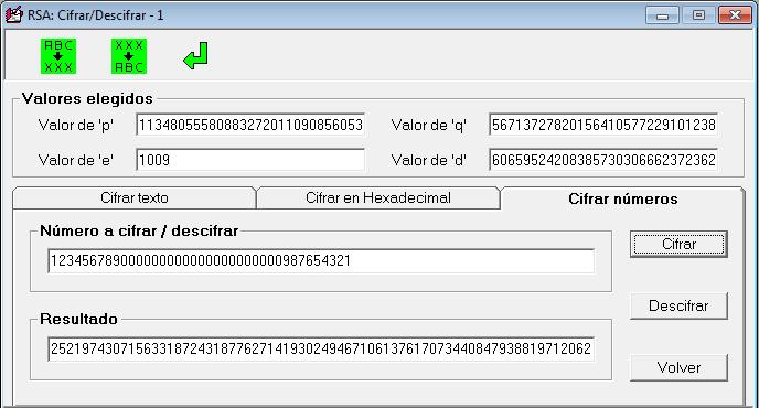 En la prácticaRSA3.3.1 vas a comprobar esta cifra de texto usando el software genRSA y luego el software ExpoCrip.