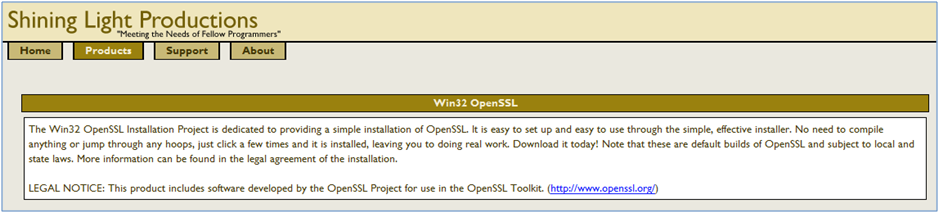 Si lo deseas, puedes descargar también el programa desde la propia página Web de OpenSSL. En este caso, es posible que encuentres una versión más actual, como así ocurre en julio de 2012 en que la última versión en la página Web de OpenSSL es la 1.0.1c de fecha 10 de mayo de 2012.