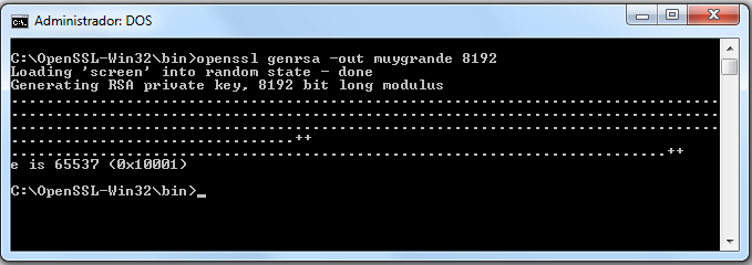 C:\OpenSSL-Win32\bin>openssl genrsa -out muygrande 8192