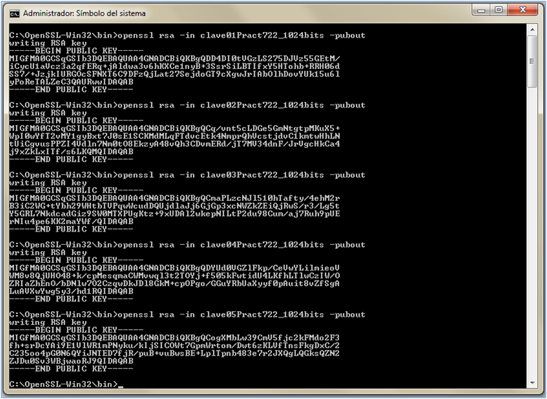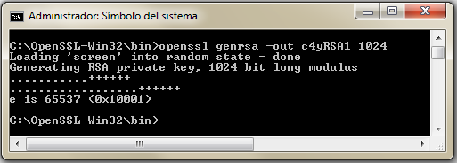 C:\OpenSSL-Win32\bin>openssl genrsa -out claveRSA1 2048
