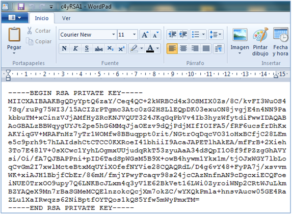 Clave c4yRSA1Texto abierta con WordPad