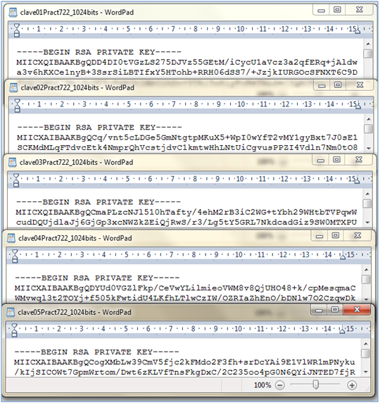 Si generas varias claves de 1.024 bits, verás que los primeros caracteres Base64 son iguales para todas ellas: MIG... para la clave pública y MII... para la clave privada. Lo comprobarás en la siguiente práctica.