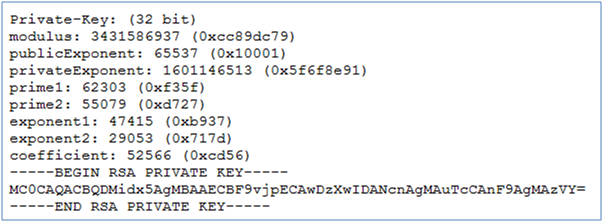 2. Luego, con esos valores de p y q y conociendo que e = 0x10001 vas a generar las correspondientes claves con genRSA.