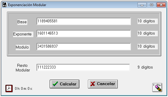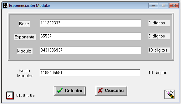 Cifrado y descifrado con la clave RSAejemploTRC en el cuerpo n = 3.431.586.937