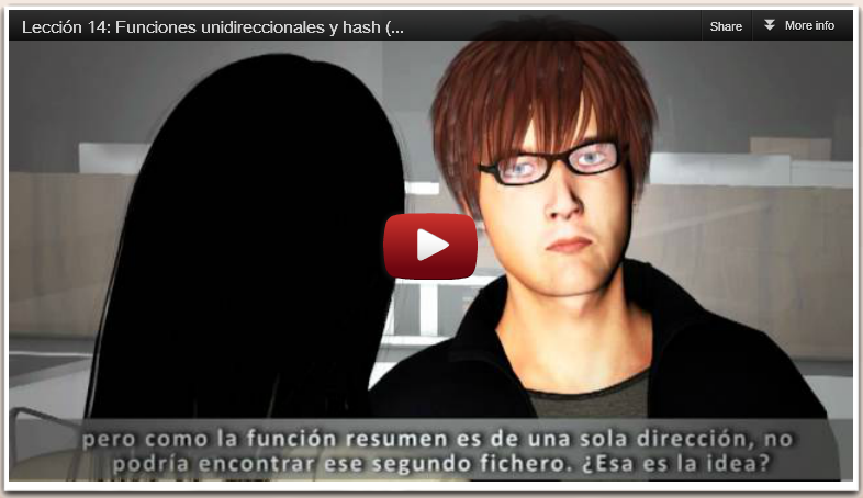 Para aprender más sobre las funciones unidireccionales y otras cosas en las que éstas tienen una importante aplicación como son las funciones hash, te recomiendo veas la Lección 14 "Funciones unidireccionales y hash" de la Enciclopedia de la Seguridad de la Información Intypedia.