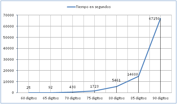 | 80 dígitos (264 bits) | 5.461 segundos |