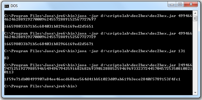 Conversión de valores de la Clave RSA 90 dígitos con Dec2Hex para usarlos en genRSA